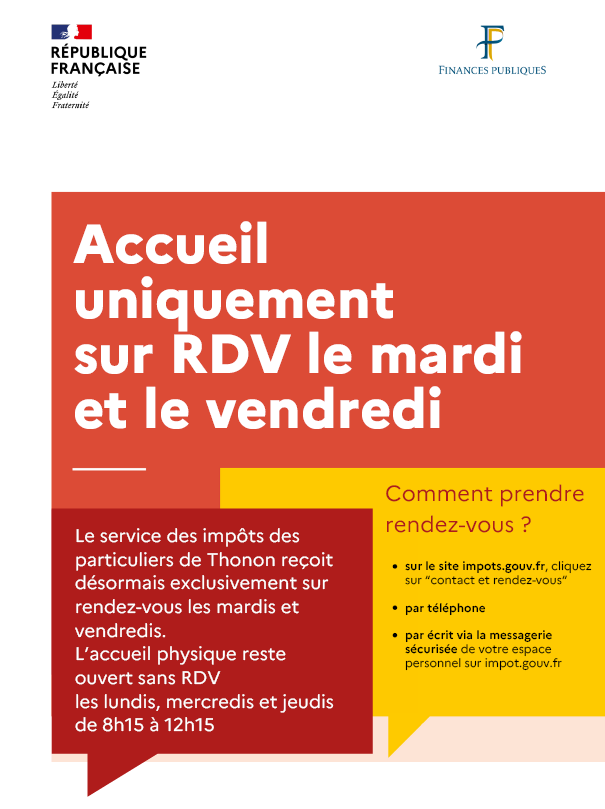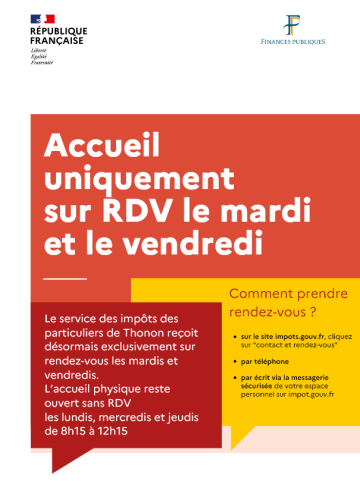Pour votre information et celle de vos administrés, les modalités d'accueil au service des impôts des particuliers de Thonon évoluent.