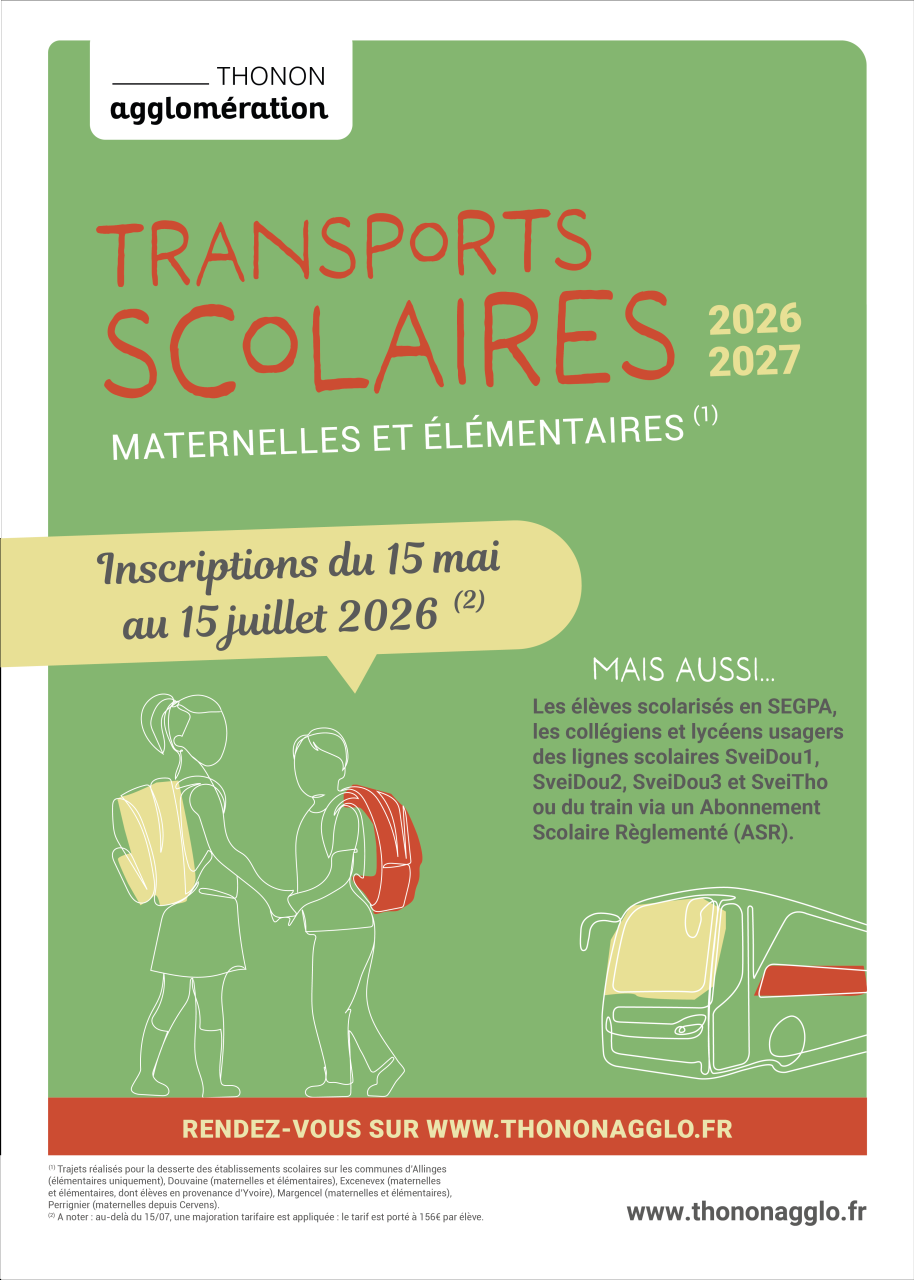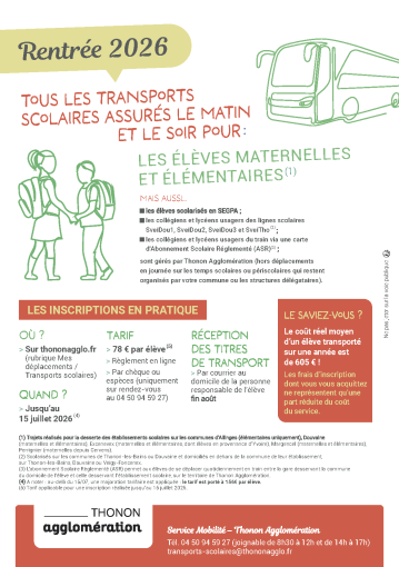 Les inscriptions pour les transports scolaires Thonon Agglomération ou STAR'T,pourront être effectuées en ligne via le lien :